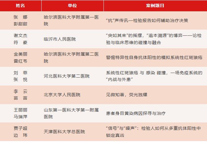参与北区展示的18组案例涵盖多临床科室,案例分析深入、细节丰富,检验人以实验数据为临床决策“导航”,突显出实验室检测在自身免疫性疾病诊断中的重要价值。临床医生通过缜密的临床思维破解诊断迷局,检验与临床协作默契,环环紧扣,生动诠释了检验分析与临床实践的深度融合。