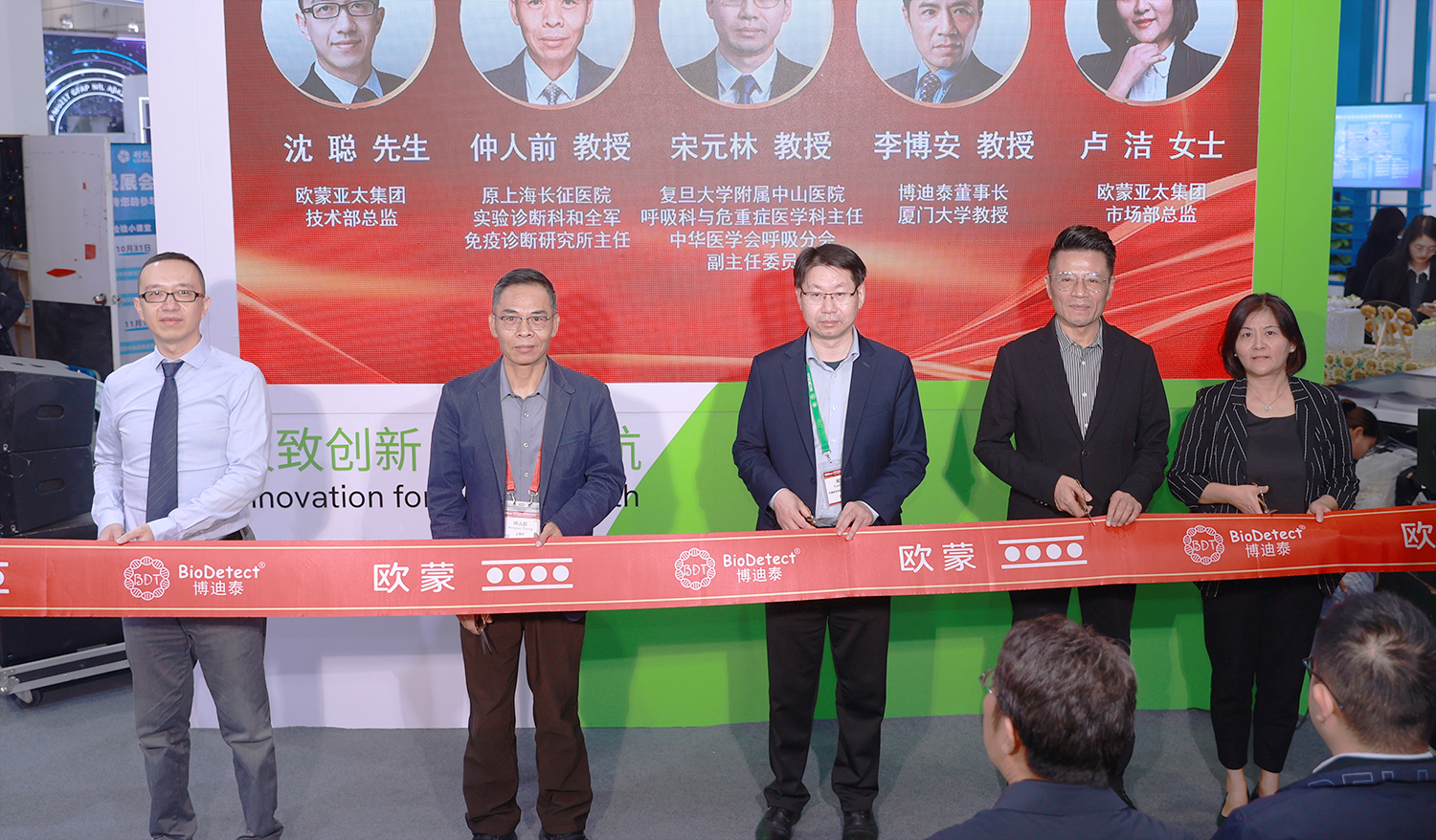 复旦大学附属中山医院呼吸科与危重症医学科主任、中华医学会呼吸分会副主任委员宋元林教授,原上海长征医院实验诊断科和全军免疫诊断研究所主任、前中国免疫学会临床免疫分会主任委员仲人前教授,博迪泰董事长、厦门大学教授李博安先生,欧蒙亚太集团市场部总监卢洁女士以及欧蒙亚太集团技术部总监沈聪先生亲临现场,与现场嘉宾共同见证欧蒙呼吸道病原体检测全方位一站式解决方案的隆重发布。